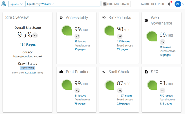 Website teams rely on automated monitoring tools every day to track broken links, SEO performance, and content quality. Accessibility belongs in the same category as critical site‑quality checks. While manual audits remain the primary solution for identifying complex barriers, automated monitoring plays a key role in detecting issues that appear between those deeper reviews.
